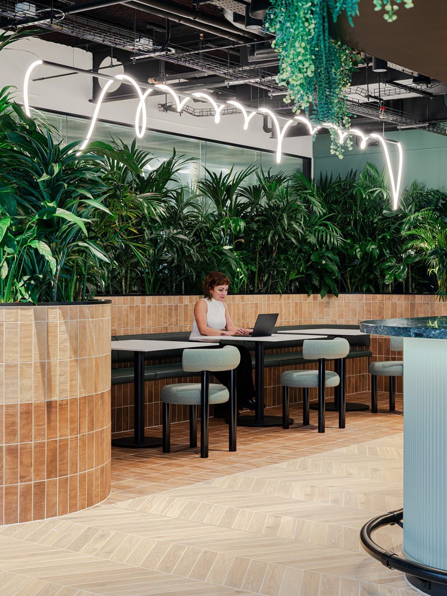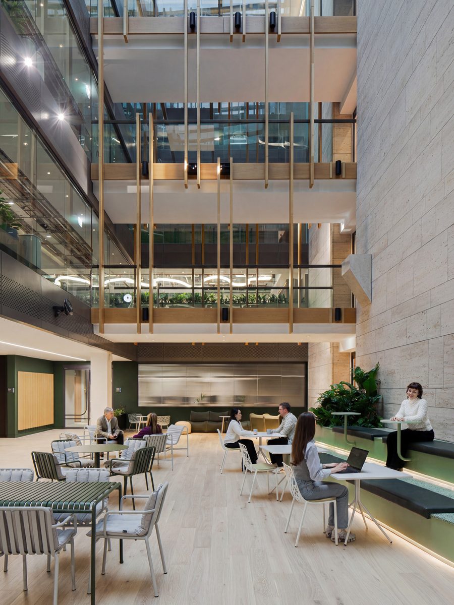 The new strategy prioritised shared activity and choice. It rebalances the workplace from 70% task-based settings to 40% collaborative and social environments.